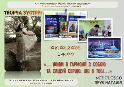 8 лютого о 14.00 Кременчуцька міська публічна бібліотека (