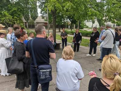 Завершилася подорож біля Палацу культури та творчості обміном вражень та обговоренням цікавих фактів з історії головної вулиці Крюкова, вулиці Івана Приходька.