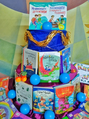 Виставка оформлена у вигляді яскравої інсталяції - святкового книжкового торта. Кожен ярус цього символічного «десерту» прикрашений кольоровими елементами декору та представляє добірку найцікавіших книг для дітей. До уваги юних читачів казки, пригодницькі повісті, веселі оповідання, пізнавальні видання про літо, природу, відпочинок та канікули. Кожна книга на виставці, мов окремий смачний шматочок торта, який дарує радість читання, нові знання та гарний настрій.