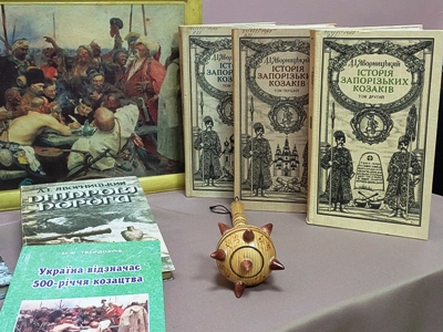 Дмитро Яворницький жив козацькою темою — збирав пісні, легенди, старовинні речі, розкопував січові могили, писав книги, що відкривали українцям їхнє героїчне минуле. Його тритомна «Історія запорозьких козаків» і сьогодні залишається безцінним джерелом знань про минуле нашої землі. На виставці представлено як праці самого Яворницького — «Історія запорозьких козаків», «Із української старовини», «Дніпрові пороги», так і книги про нього: біографічні розвідки, спогади сучасників.