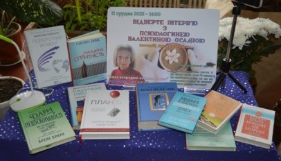 11 грудня 2025 року в Кременчуцькій міській публічній бібліотеці відбулась зустріч, у форматі інтерв’ю, із психологинею Валентиною Осадчою під назвою «Сила всередені кожного з нас». Гостя заходу - Валентина Осадча, практикуюча психологиня. Професії психолога присвятила понад 25 років свого життєвого шляху. З першого дня війни 2014 року - психолог в команді спеціалістів, які працювали з учасниками АТО, - міжнародний проект при шпиталі.