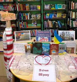 Бібліотекарі ознайомили учнів із історичними фактами перебігу цих страшних подій в історії України. Присутні переглянули документальні фільми про героїв Крут, які прославляли честь і героїзм української молоді.