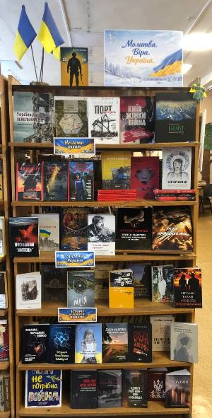 Також на виставці представлені художні книги, народжені війною. Це романи, повісті, поезія, написані під звуки сирен і вибухів. У цих творах - жива правда сьогодення, переживання людей, віра в перемогу і світло навіть у темні часи.