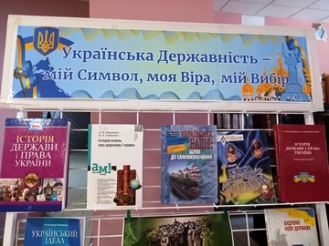 Книжкова виставка-панорама до Дня Української Державності «Українська державність – мій символ, моя віра, мій вибір», організована у