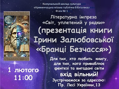 25 січня 2026 року в Кременчуцькій міській публічній бібліотеці відбувся музично-поетичний квартирник «Зима…музика…вірші…Поки місто спить». Захід підготували та провели